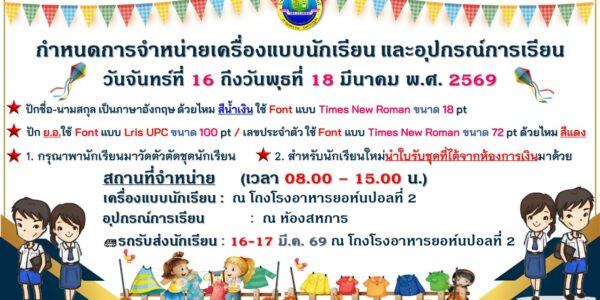 กำหนดการจำหน่ายเครื่องแบบนักเรียน และอุปกรณ์การเรียน