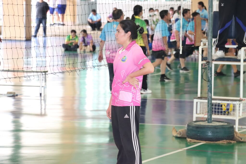 คุณพ่ออนุศักดิ์ กิจบำรุง รองผู้อำนวยการ แผนกหญิง เข้าร่วมลงแข่งขันกีฬาวอลเลย์บอล ในทีมชาย ของแผนกหญิง.