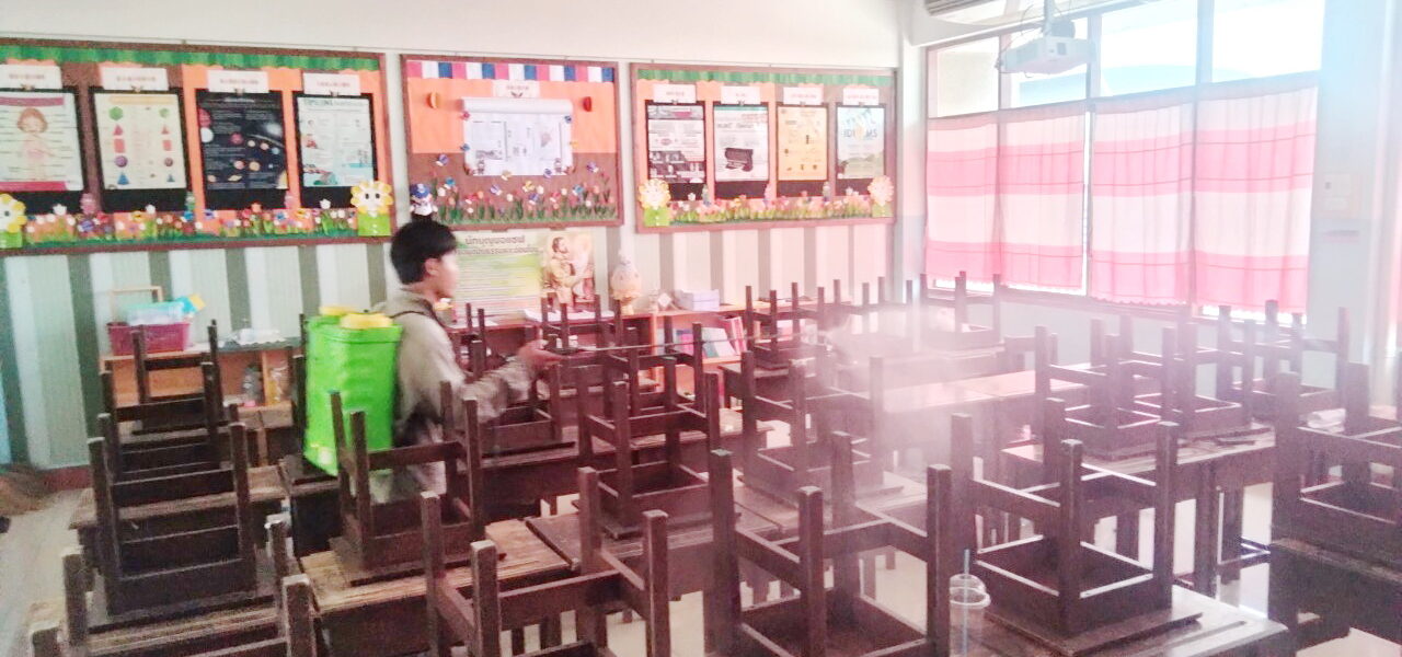 ฉีดพ่นยาฆ่าเชื้อในบริเวณห้องเรียน ห้องปฏิบัติการ รถตู้โรงเรียน และจุดสัมผัสต่างๆ และฉีดพ่นสารเคมีแบบหมอกควัน เพื่อกำจัดยุงลายที่เป็นพาหะนำโรคไข้เลือดออก