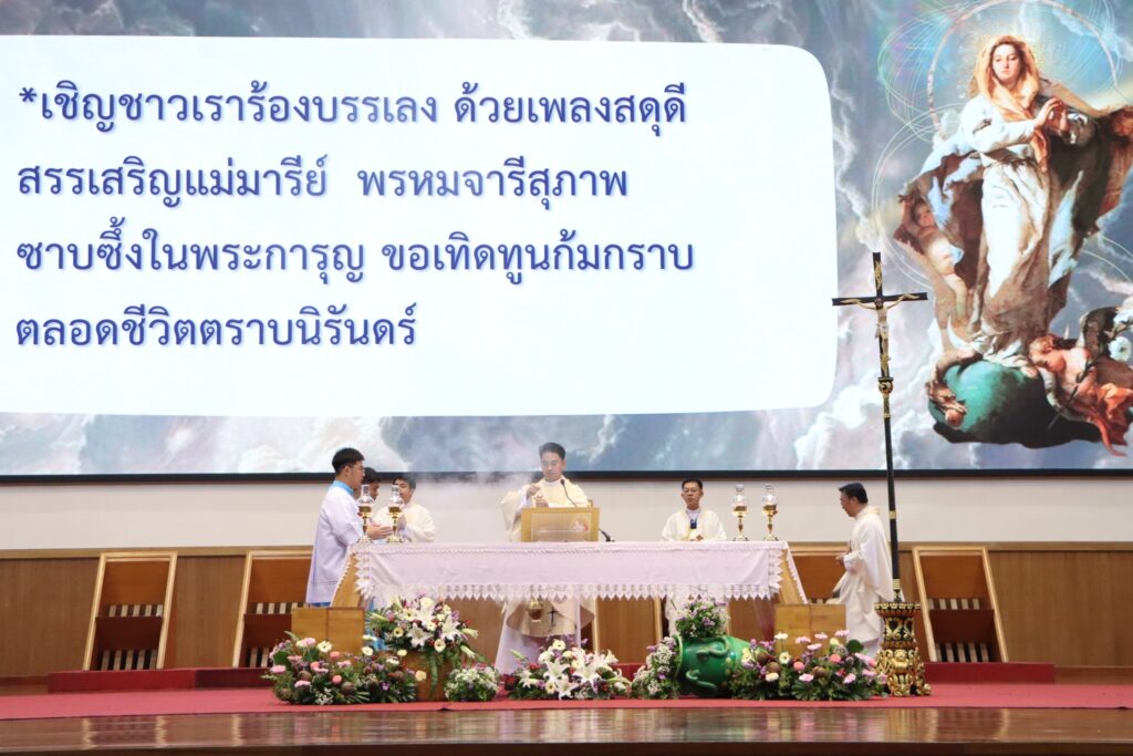 วันพฤหัสบดีที่ 15 สิงหาคม พ.ศ. 2567 คณะผู้บริหาร คณะครู นักเรียน ร่วมพิธีบูชาขอบพระคุณสมโภชพระนางมารีย์รับเกียรติเข้าสู่สวรรค์ รอบที่ 2 ⏰ (10.30 – 12.10 น.) คุณครูและนักเรียนระดับชั้นมัธยมศึกษาปีที่ 1 – 6 ทุกแผนก 🕹 ณ หอประชุมใหญ่อาคารนักบุญสมเด็จพระสันตะปาปา ยอห์น ปอล ที่ 2