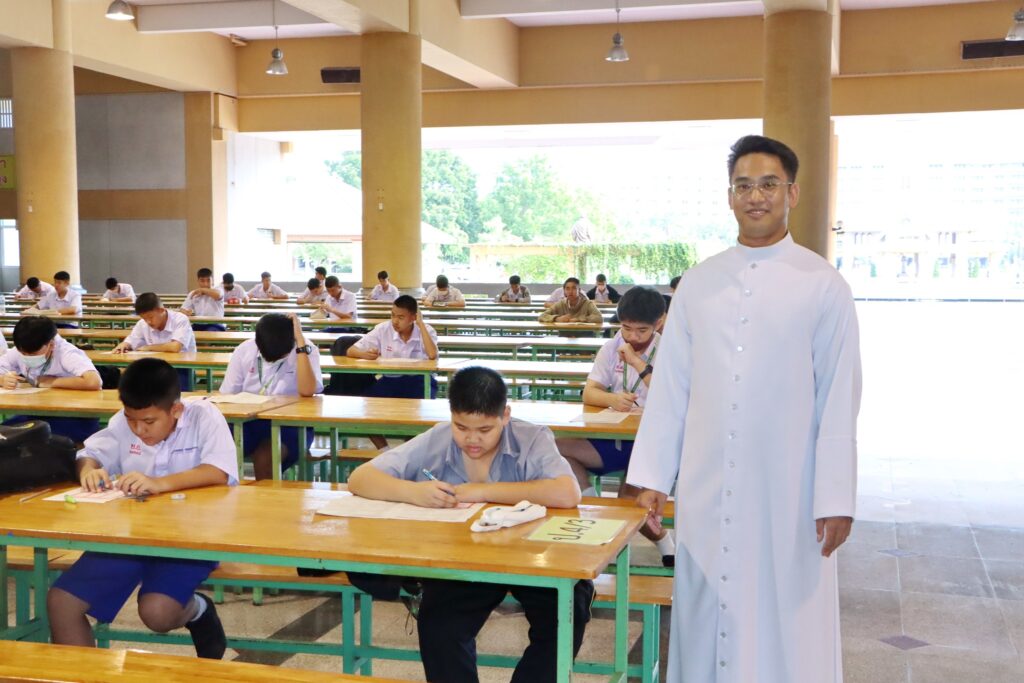(เวลา 07.50 น. – 08.30 น.) บรรยากาศการทดสอบพระคัมภีร์ “หนังสือกันดารวิถี” ของนักเรียนคาทอลิกโรงเรียนยอแซฟอุปถัมภ์ สามพราน แผนกชาย ระดับชั้นประถมศึกษาปีที่ 4 – มัธยมศึกษาปีที่ 5 โดยมี บาทหลวงธนบูรณ์ พูนผล รองผู้อำนวยการโรงเรียนยอแซฟอุปถัมภ์ แผนกชาย มาเป็นกำลังใจให้กับนักเรียนคาทอลิก