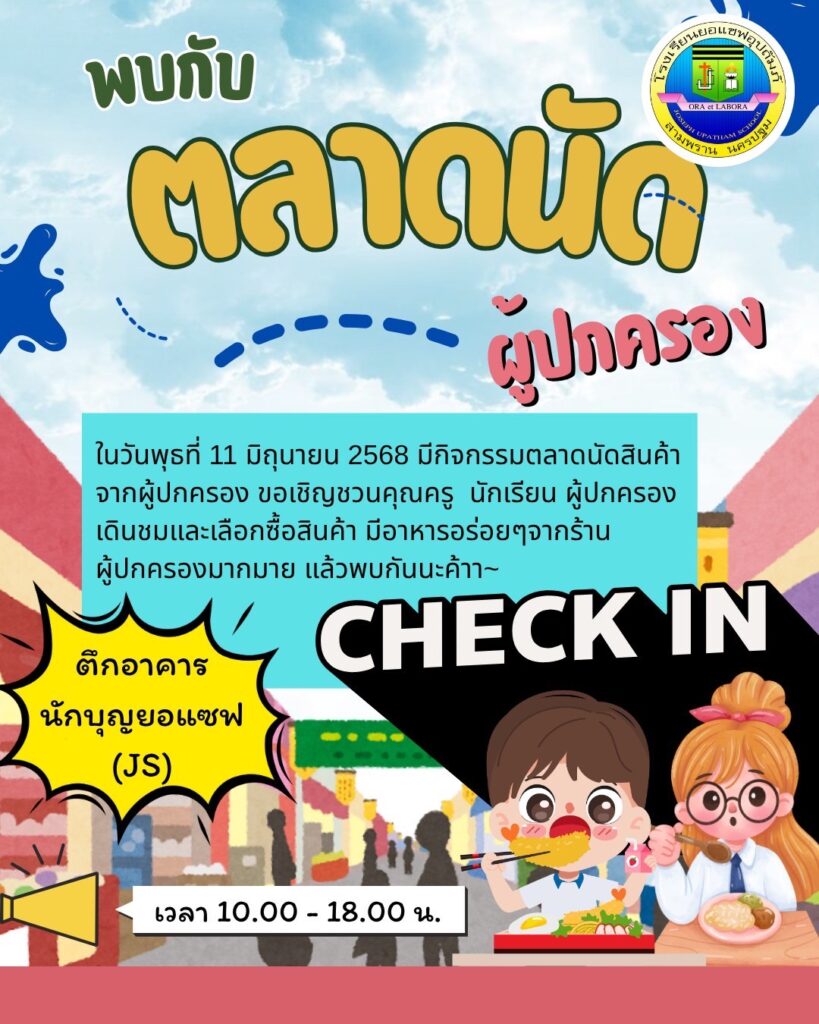 วันพุธที่ 11 มิถุนายน 2568 มีกิจกรรมตลาดนัดสินค้าจากผู้ปกครอง ขอเชิญชวนคุณครู นักเรียน ผู้ปกครองเดินชมและเลือกซื้อสินค้า มีอาหารอร่อยๆ จากร้านผู้ปกครองมากมาย แล้วพบกันนะครับ