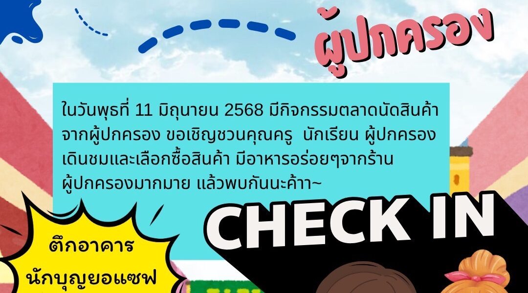 วันพุธที่ 11 มิถุนายน 2568 มีกิจกรรมตลาดนัดสินค้าจากผู้ปกครอง ขอเชิญชวนคุณครู นักเรียน ผู้ปกครองเดินชมและเลือกซื้อสินค้า มีอาหารอร่อยๆ จากร้านผู้ปกครองมากมาย แล้วพบกันนะครับ
