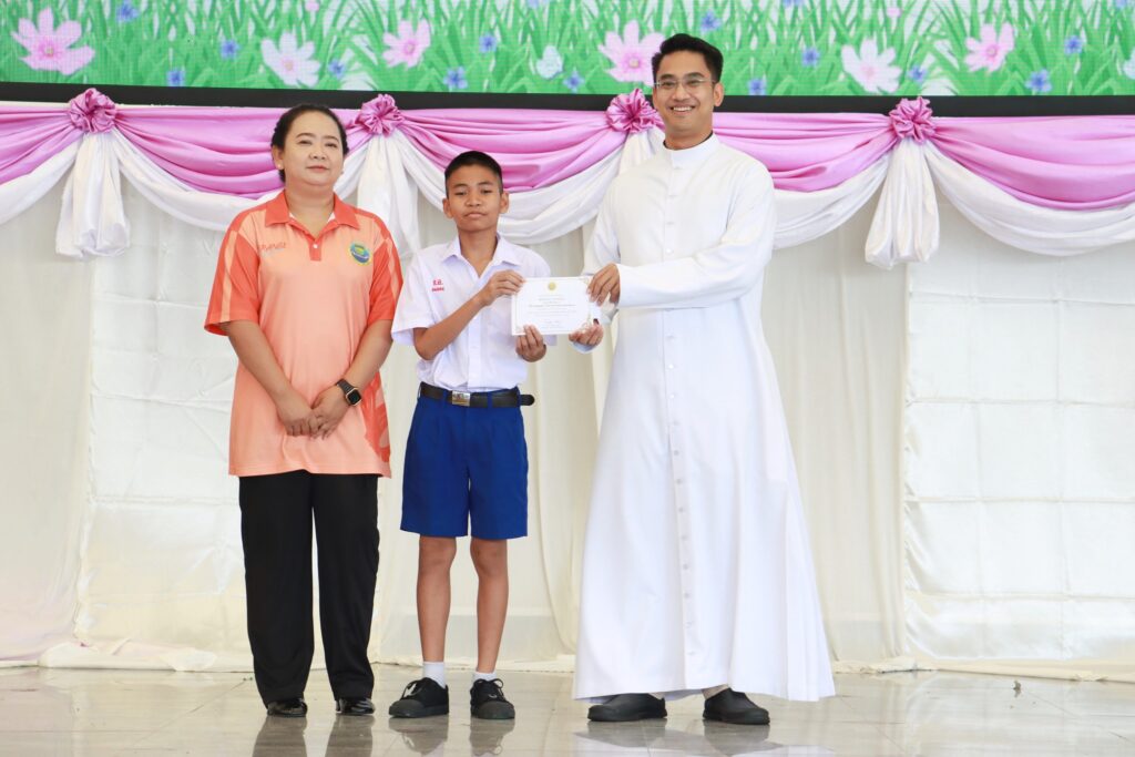 บาทหลวงธนบูรณ์ พูนผล รองผู้อำนวยการโรงเรียนยอแซฟอุปถัมภ์ แผนกชาย ให้เกียรติเป็นประธานมอบเกียรติบัตรให้กับนักเรียน