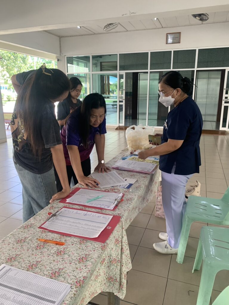 (เวลา 06.30 น. – 12.00 น.) ชั่งน้ำหนัก วัดส่วนสูง วัดความดันโลหิต เจาะเลือด (เก็บอุจจาระเฉพาะพนักงานครัว)
