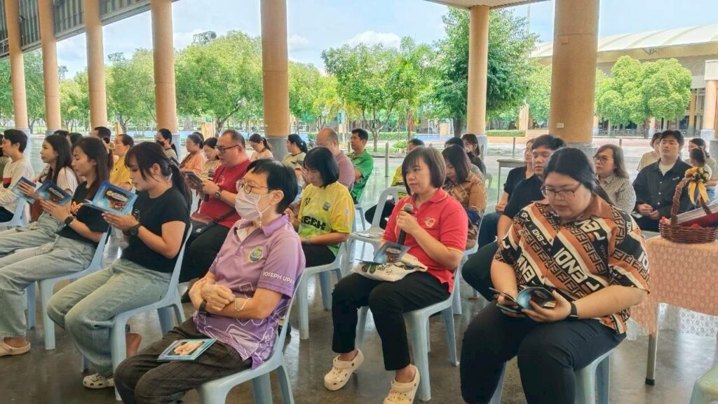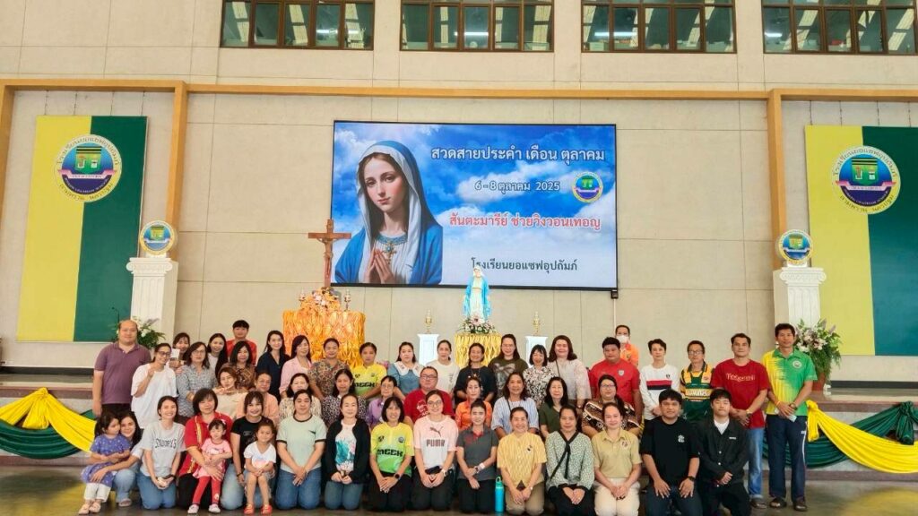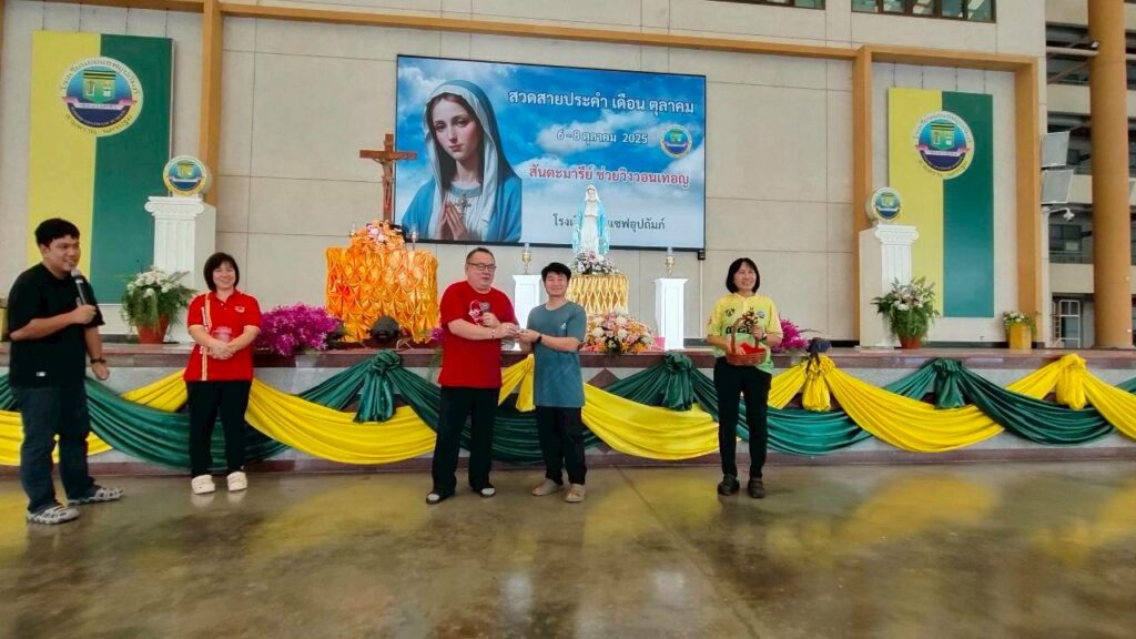 วันจันทร์ที่ 6 ตุลาคม พ.ศ. 2568⏰ (เวลา 09.00 น. – 09.30 น.) ฝ่ายจิตตาภิบาลเชิญชวนคุณครู เจ้าหน้าที่ และบุคลากรทุกคนในโรงเรียนร่วมสวดสายประคำเดือนตุลาคม ผู้ร่วมสวดสายประคำ มีจำนวน 45 คน 🙏โดยมีคุณพ่อสมชาย อัญชลีพรสันต์ จิตตาธิการโรงเรียน ให้ความรู้เกี่ยวกับความสำคัญของการสวดสายประคำพร้อมนำของขวัญมามอบให้แก่ผู้โชคดีทั้ง 7 ท่าน 🕹 ณ โดมอาคารฟรังซิสเซเวียร์ 🙏”ความหวังนี้ไม่ทำให้เราผิดหวัง” (รม.5 : 5)