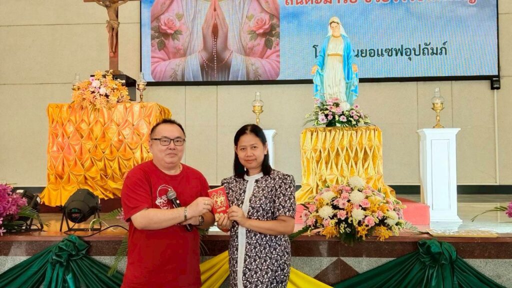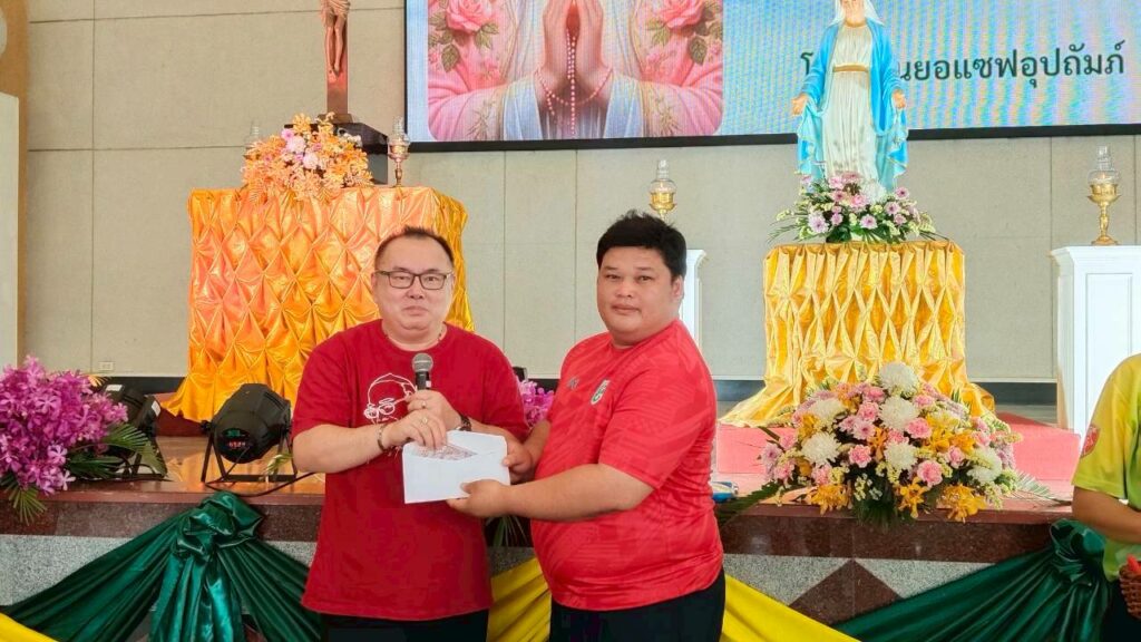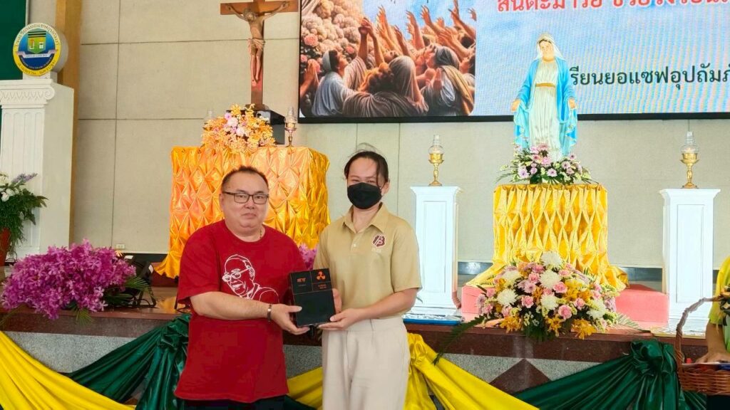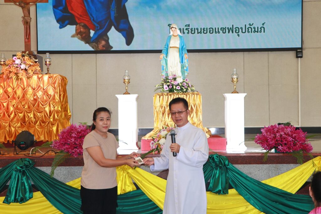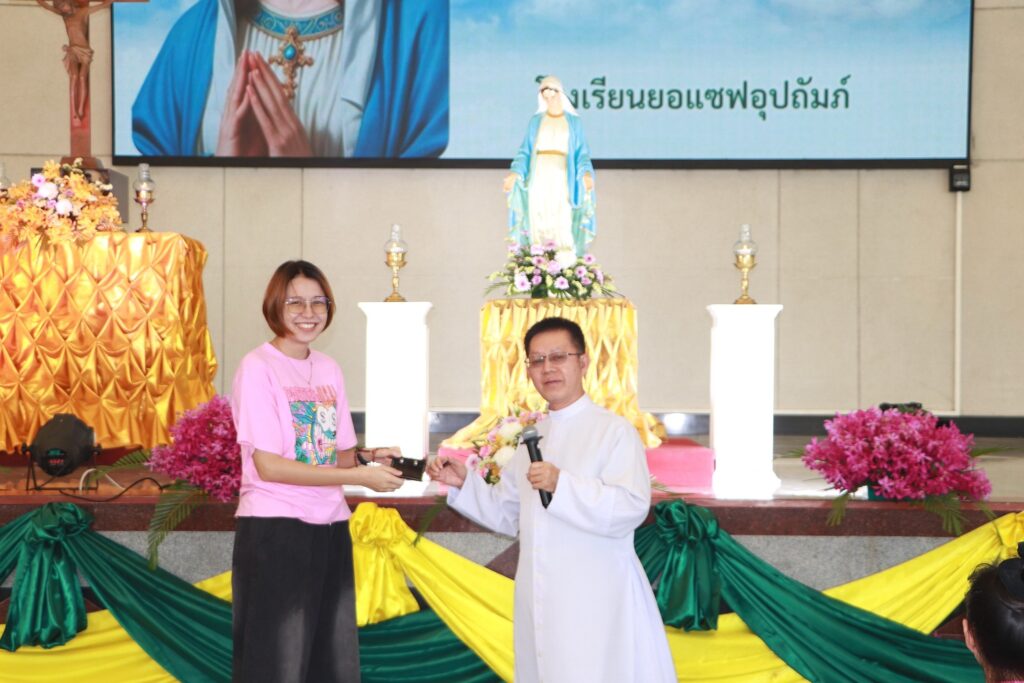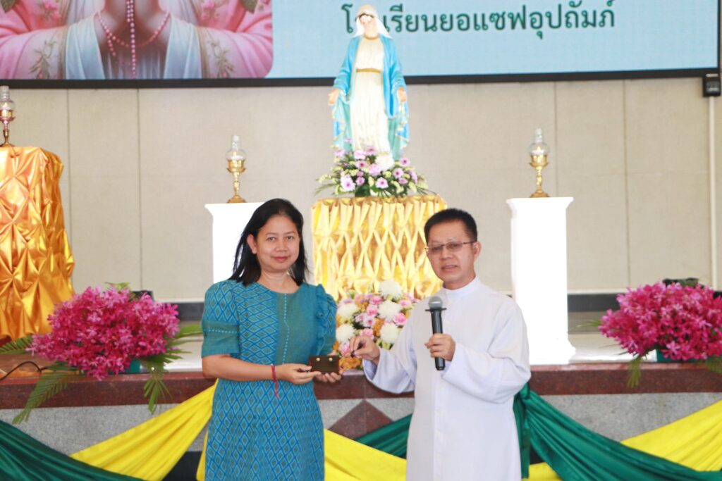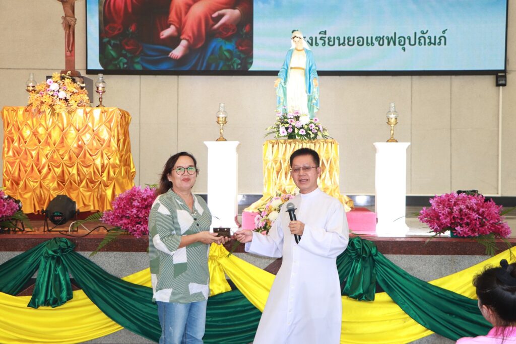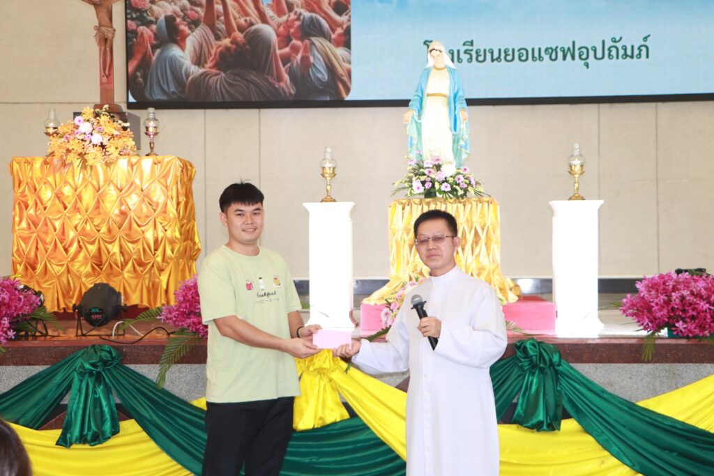คุณพ่อสุชาติ อุดมสิทธิพัฒนา ผู้อำนวยการโรงเรียนยอแซฟอุปถัมภ์ และผู้สนับสนุนผู้มีน้ำใจดีให้แก่ผู้โชคดีทั้ง 12 ท่าน