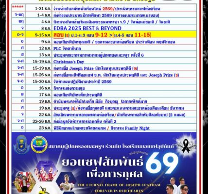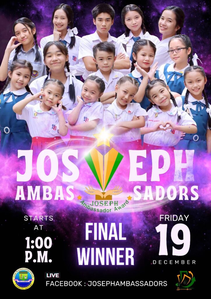 วันศุกร์ที่ 19 ธ.ค.2568เวลา 13.00-16.00 น.ขอเชิญรับชม และส่งกำลังใจเชียร์เด็กทั้ง 15 คนโครงการ Joseph Ambassadors Season 5 “รักษ์โลก รักภาษา” เด็กๆ จะค้นหาแชมป์ของ Season 5ในรอบชิงชนะเลิศ