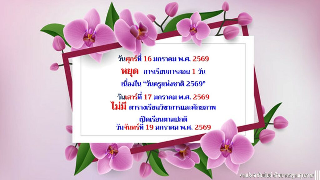 Homepageประกาศประกาศหยุดการเรียนการสอน 1 วัน ประกาศ ประกาศหยุดการเรียนการสอน 1 วัน admin1 Posted on 15 มกราคม 2026 admin1 View all posts แนะแนวเรื่อง Previous Postเชิญรับชมการถ่ายทอดสดพิธีเปิดศูนย์การเรียนรู้มิตรภาพและสายสัมพันธ์จีน-ไทย You Might Also Like ประกาศ ประกาศวันหยุด โรงเรียนยอแซฟอุปถัมภ์ admin1 6 สิงหาคม 2025 ประกาศ ประกาศผลรางวัลการแข่งขันออกแบบหน้าปกวารสาร “ซ่อนกลิ่น” ปีการศึกษา 2567 admin1 17 ตุลาคม 2024 ประกาศ ประกาศรายชื่อนักเรียนที่มีสิทธิ์เรียนในแผนการเรียน Joseph Gifted ระดับชั้นประถมศึกษาปีที่ 1 ปีการศึกษา 2569 admin1 3 พฤศจิกายน 2025 ประกาศ ประกวดออกแบบหน้าปกซ่อนกลิ่นปีการศึกษา 2567 admin1 7 สิงหาคม 2024