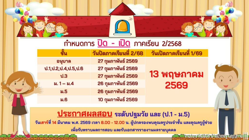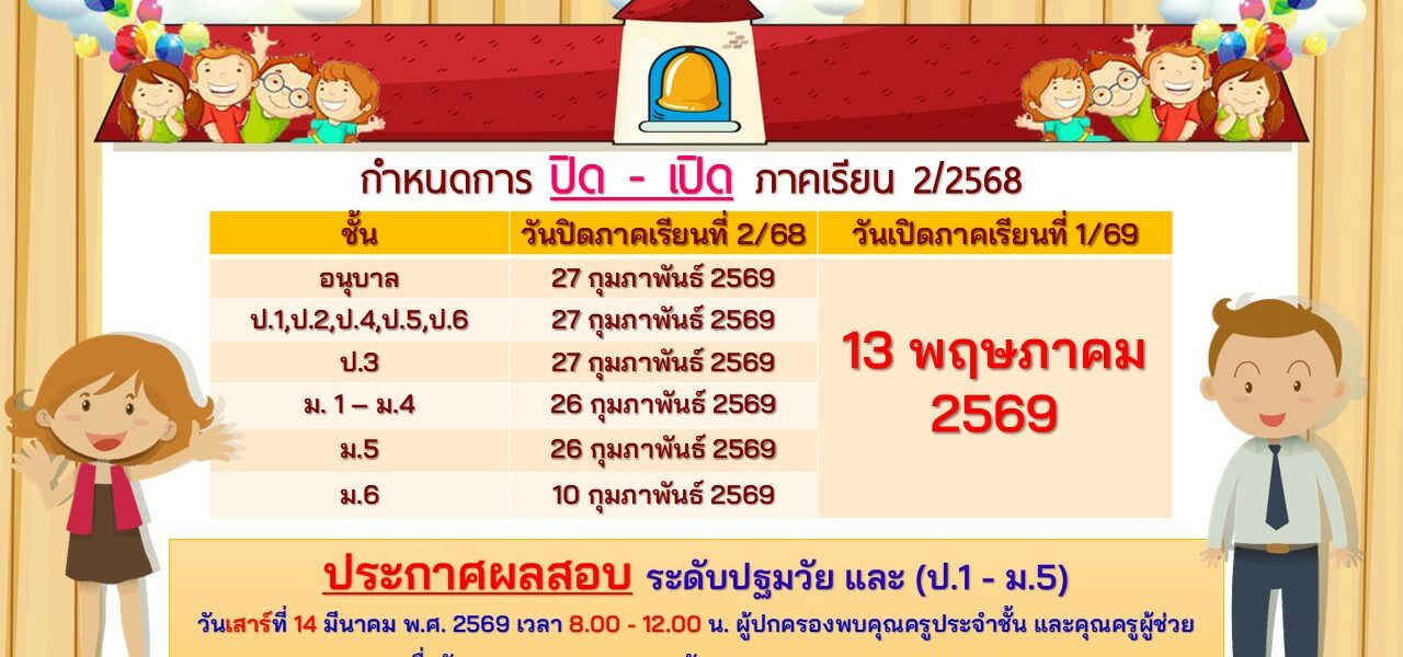 Homepageประกาศกำหนดการ ปิด – เปิด ภาคเรียน 2/2568 ประกาศ กำหนดการ ปิด – เปิด ภาคเรียน 2/2568 admin1 Posted on 24 กุมภาพันธ์ 2026 admin1 View all posts แนะแนวเรื่อง Previous Postกำหนดการ สำหรับนักเรียน Next Postพิธีมอบวุฒิบัตร 💛💚 “ บัณฑิตน้อย ” 💛💚 You Might Also Like ประกาศ โรงเรียนยอแซฟอุปถัมภ์ เปิดรับสมัครนักเรียนใหม่ปีการศึกษา 2568 admin1 15 กรกฎาคม 2024 ประกาศ กำหนดการเรียน ร.ด. นักศึกษาวิชาทหาร ชั้นปี 1 – 3 ประจำปีการศึกษา 2567 admin1 20 สิงหาคม 2024 ประกาศ ประกาศแผนการเรียนปีการศึกษา 2569 admin1 7 พฤศจิกายน 2025 ประกาศ ประกวดทำ content ให้ความรู้วิยาศาสตร์ 1 นาที TikTok Challenge admin1 30 กรกฎาคม 2024