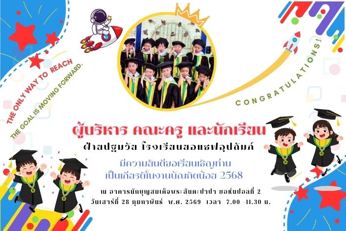 Homepageประกาศพิธีมอบวุฒิบัตร 💛💚 “ บัณฑิตน้อย ” 💛💚 ประกาศ พิธีมอบวุฒิบัตร 💛💚 “ บัณฑิตน้อย ” 💛💚 admin1 Posted on 25 กุมภาพันธ์ 2026 admin1 View all posts แนะแนวเรื่อง Previous Postกำหนดการ ปิด – เปิด ภาคเรียน 2/2568 You Might Also Like ประกาศ พิธีบูชาขอบพระคุณและฉลองครบรอบ 60 ปี โรงเรียนยอแซฟอุปถัมภ์ admin1 10 มิถุนายน 2025 ประกาศ สนามแบดมินตัน เปิดให้บริการ ณ บริเวณบ้านสวนยอแซฟ admin1 20 ตุลาคม 2025 ประกาศ กำหนดการสอบปลายภาค ภาคเรียนที่ 1/2568 admin1 17 กันยายน 2025 ประกาศ แจ้งวันหยุดราชการเพิ่มเป็นกรณีพิเศษ admin1 21 พฤษภาคม 2025