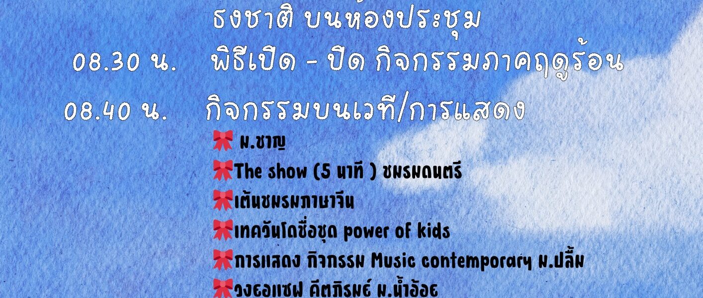 Homepageประกาศกำหนดการปิดกิจกรรมภาคฤดูร้อน 2569 ประกาศ กำหนดการปิดกิจกรรมภาคฤดูร้อน 2569 admin1 Posted on 8 เมษายน 2026 admin1 View all posts แนะแนวเรื่อง Previous Postกิจกรรมสงกรานต์โรงเรียนยอแซฟอุปถัมภ์ You Might Also Like ประกาศ ประกาศเปิดจองร้านค้างานยอแซฟสัมพันธ์ 68 admin1 2 ธันวาคม 2024 ประกาศ ปฏิทินการศึกษาระดับการศึกษาขั้นพื้นฐาน ปีการศึกษา 2567 admin1 15 พฤษภาคม 2024 English Programme กำหนดการจำหน่ายเครื่องแบบนักเรียน และอุปกรณ์การเรียน ปี 67 jsadmin 19 มีนาคม 2024 ประกาศ ปฎิทินกิจกรรมเดือนพฤศจิกายน admin1 3 พฤศจิกายน 2025