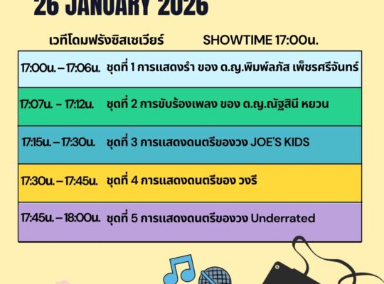 ประกาศ ขอเชิญร่วมชมและเป็นกำลังใจให้เด็กๆ ในการแสดงศักยภาพบนเวที ขอเชิญร่วมชมและเป็นกำลังใจให้เด็กๆ ในการ… admin1 26 มกราคม 2026
