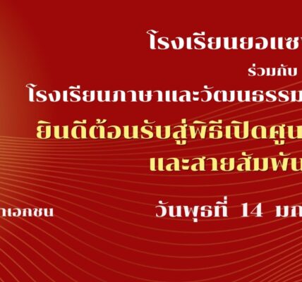 เชิญรับชมการถ่ายทอดสดพิธีเปิดศูนย์การเรียนรู้มิตรภาพและสายสัมพันธ์จีน-ไทย